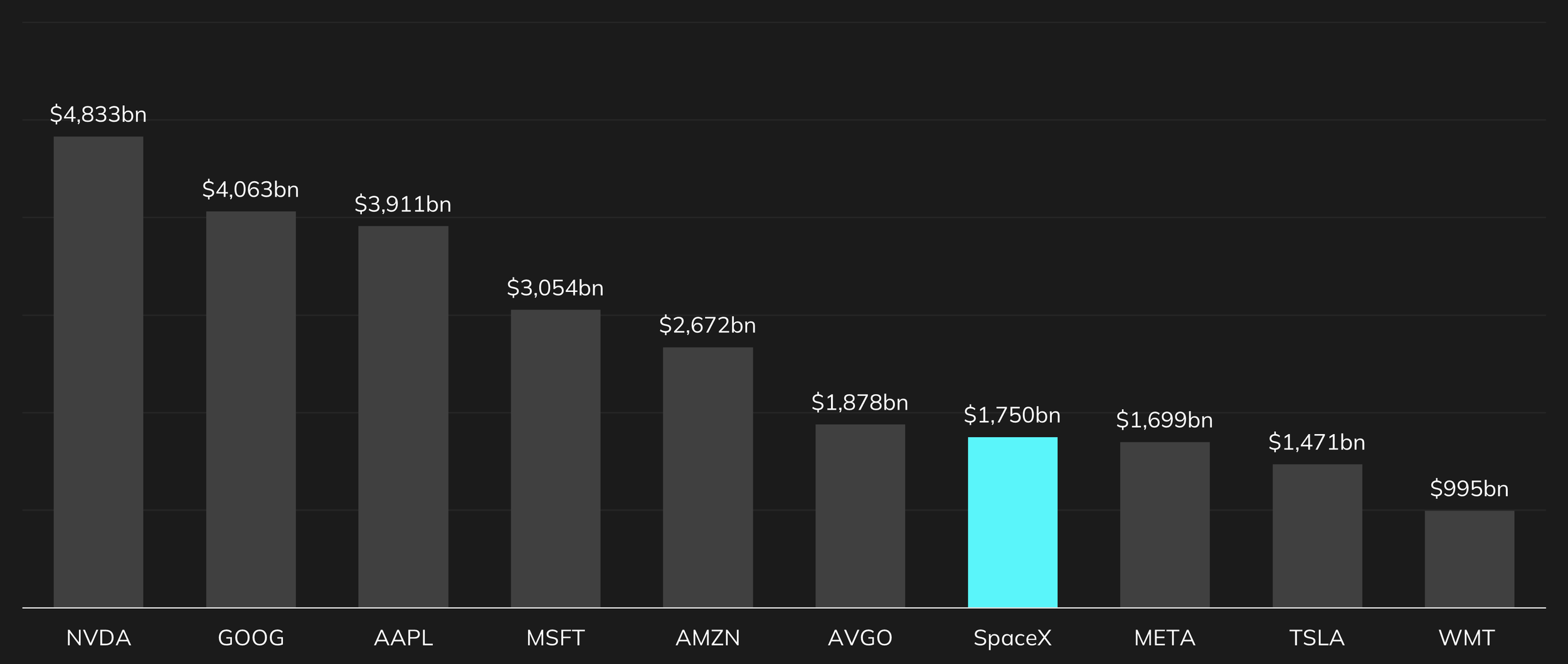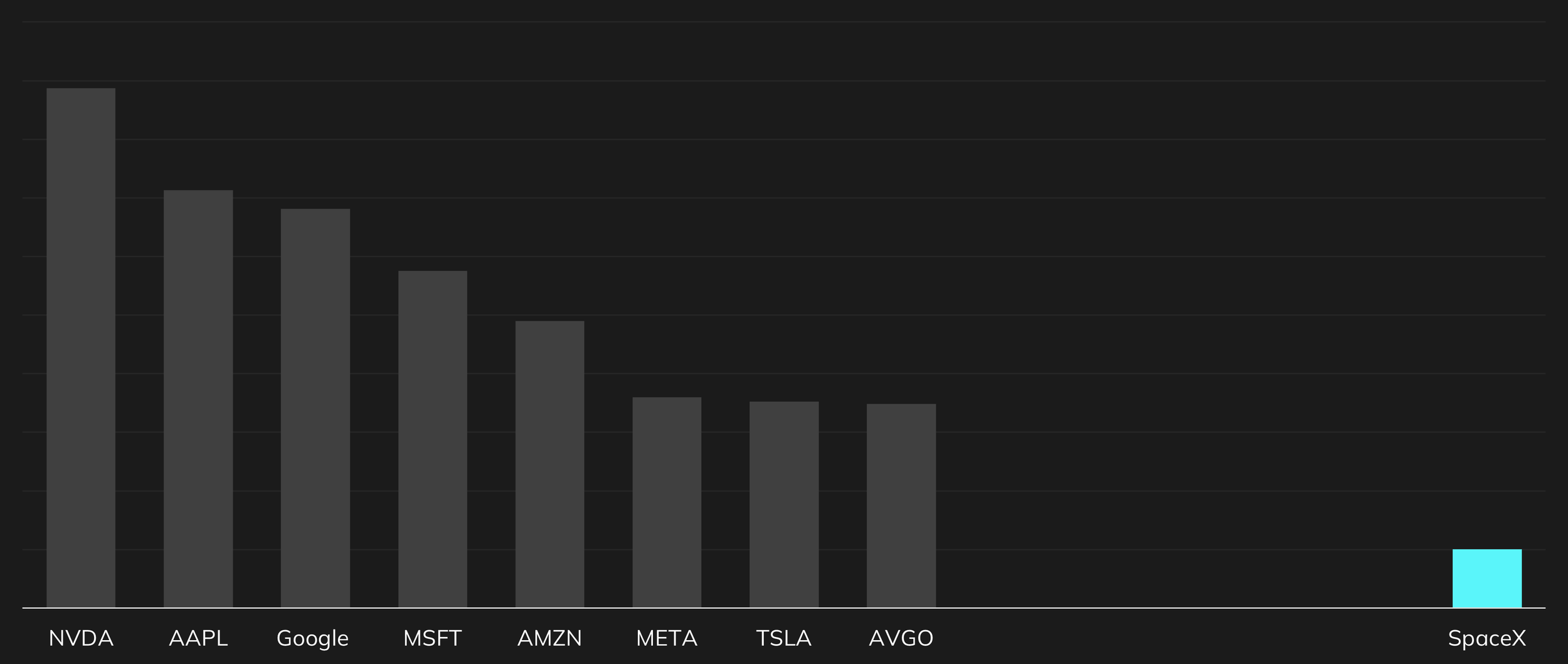 Nasdaq 100: SpaceX among the top 10 on market capitalization basis